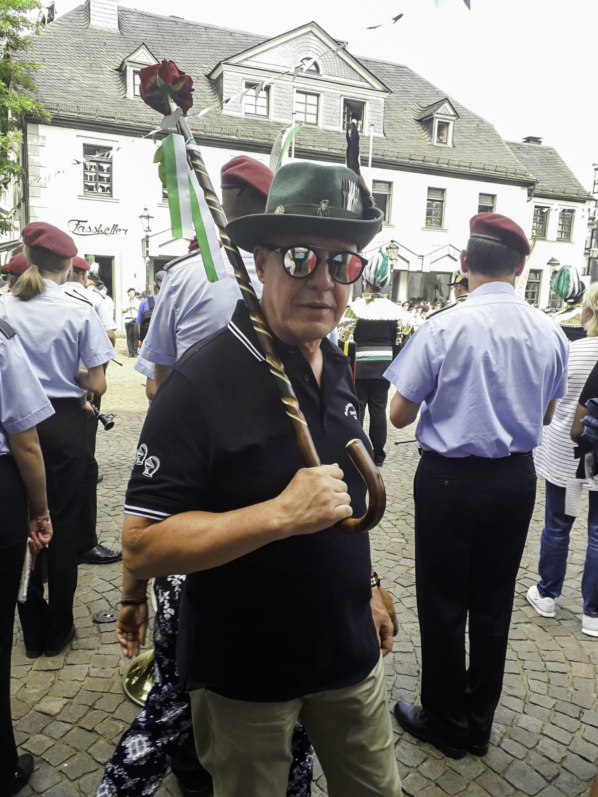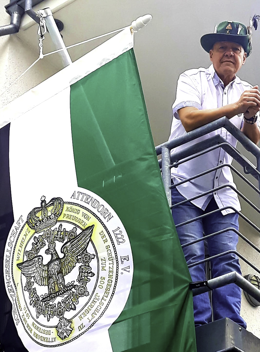 Wie das so ist, bekommt man am schnellstens Anschluss in der Gemeinschaft. Der erste Verein war dann aber eine Gesellschaft, nämlich: die Attendorner Schützengesellschaft 1222 e.V. Ein Jahr später wurde ich vom Pooskevater der Niederste Poorte zum Osterfeuer eingeladen und wurde als Pooskebruder angenommen. Ein Pooskebruder macht hauptsächlich Folgendes: Die letzten vier Samstage vor Ostern wird im Wald Holz gesammelt und zu Bürden gebunden und zum Osterfeuerkop (der Platz wo dann das Osterfeuer stattfindet) gebracht. Danach ist immer auch ein gemütliches Beisammensein angesagt. Ostersamstag wird ein Baumstamm (meistens ca. 28-30 Meter hoch) zum Marktplatz gebracht, wo die Länge offiziell gemessen wird. Die Poorte, die den längsten Stamm hat, wird geehrt. Es gibt in Attendorn 4 Poorten: Die Niederste, die Kölnerpoorte, die Wasserpoorte und die Ennester Poorte. Dann wird der Stamm auch zum Osterkop gebracht und das Kreuz gefertigt mit Latten und Stroh. Sonntagmittag wird dann allein mit der Kraft unserer Arme das Osterkreuz hochgezogen. Sonntagabend um ca. 21.00 Uhr, wenn das Kreuz auf den Kirchturm angeht, werden die Osterkreuze angesteckt. Montags trifft man sich dann zum Aufräumen. Ich bin auch aktiv in der SOKO Hüttenbau und in der Fronleichnamgruppe der Niedersten Poorte. Eine tolle Truppe, zwar die kleinste, aber die beste Poorte. Eine wirklich schöne Gemeinschaft.