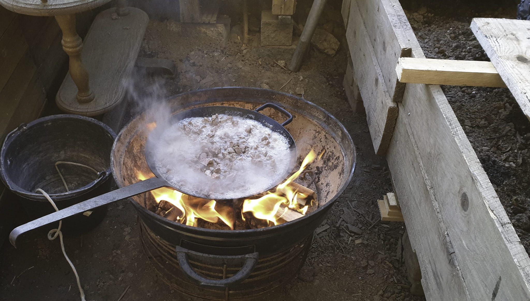 Kurz vor der Geburt ging sie in den Wald. Mein Vater war verreist, um Geld zu verdienen. Mutter sagte: Mein Kind werde ich nicht in dem Haus zur Welt bringen, wo diese Frau lebt. Also ging sie in der ersten Nacht zur Nachbarin, die in der Nähe eine Hütte hatte und am nächsten Morgen ging sie in ihre eigene Hütte. Um die Mittagzeit bekam sie Wehen. Sie schickte meinen älteren Bruder zur Oma, die solle zur Hütte kommen. (Oma, also die Mutter von meiner Mutter.) Nach einer Weile kam sie zu Hütte.