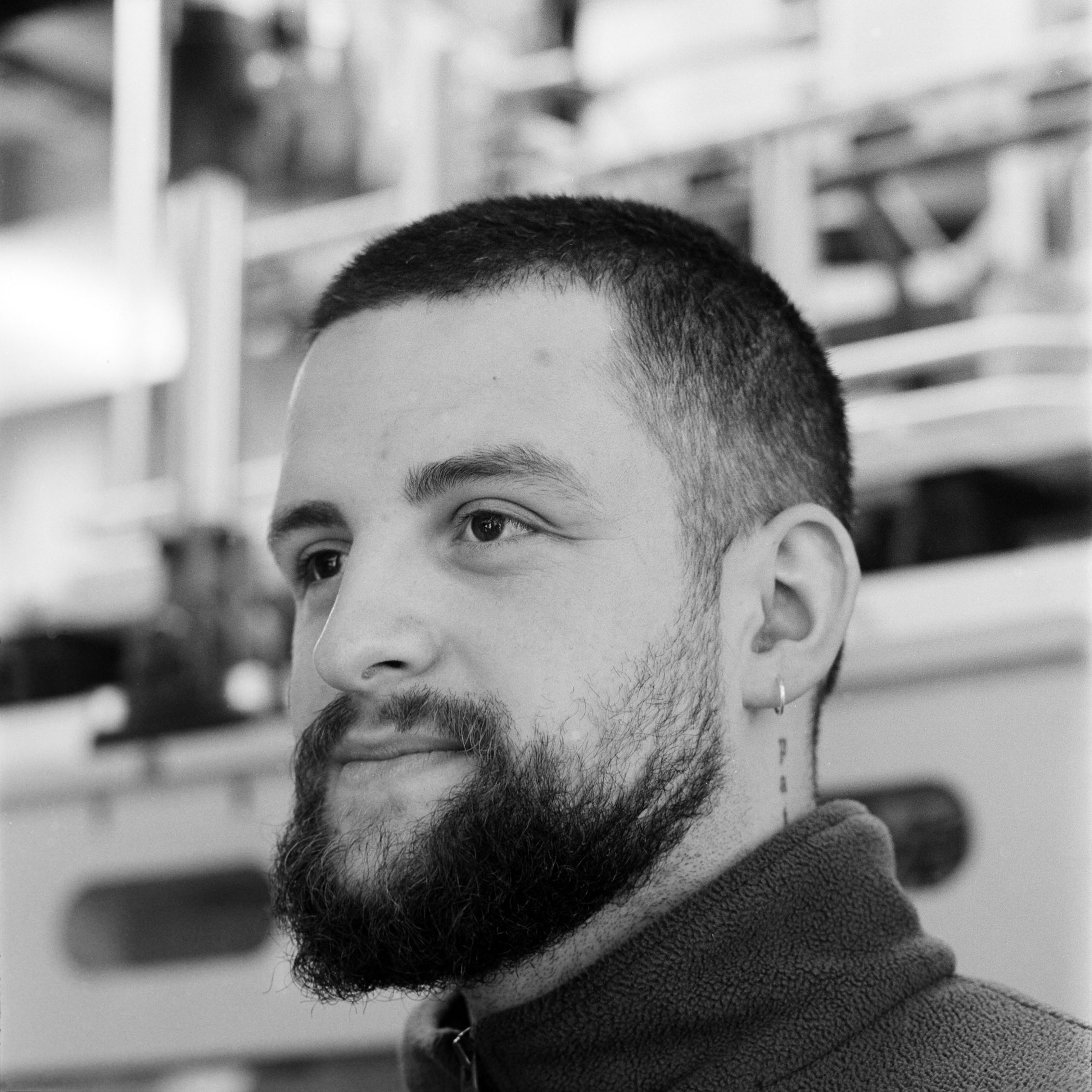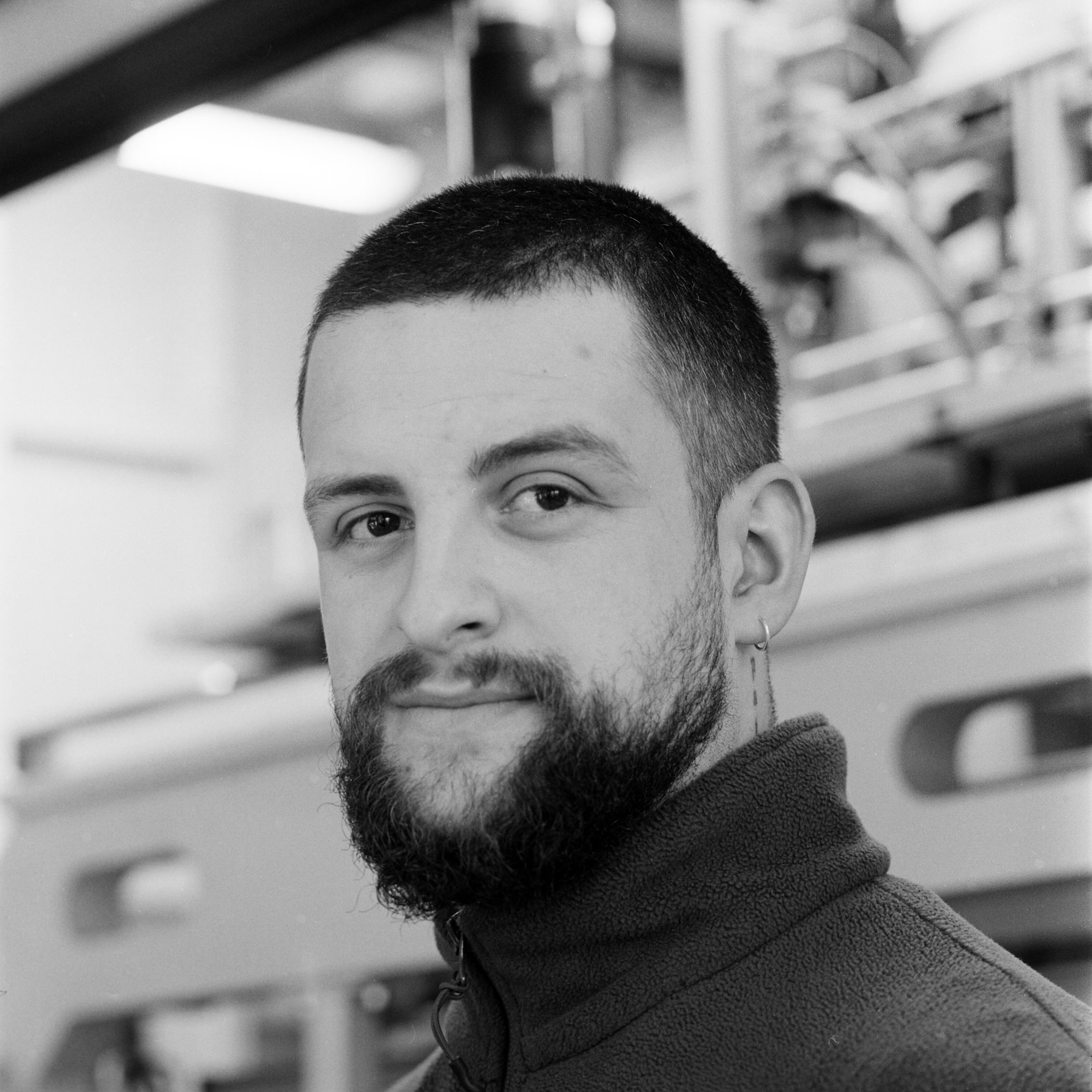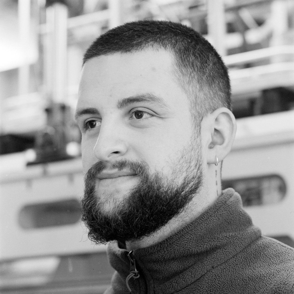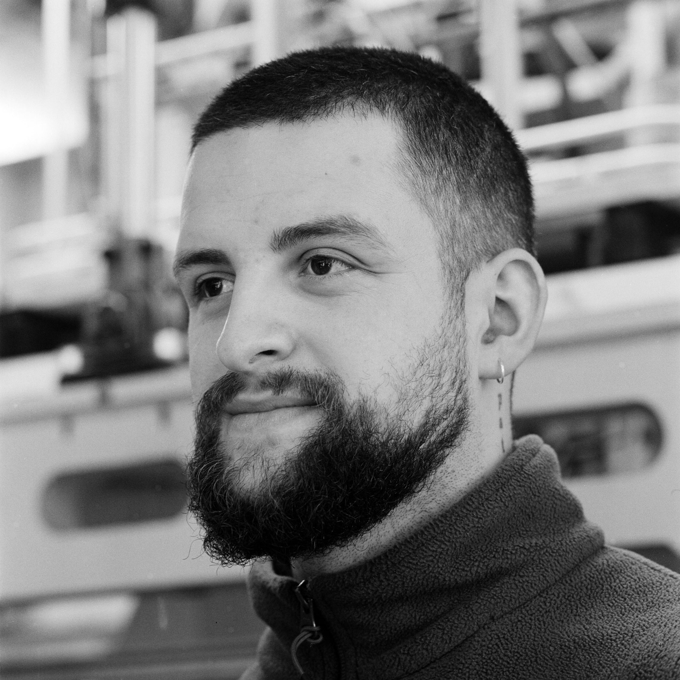 Donit an seinem Arbeitsplatz in Olpe, 2023. Fotografiert von Dirk Vogel.